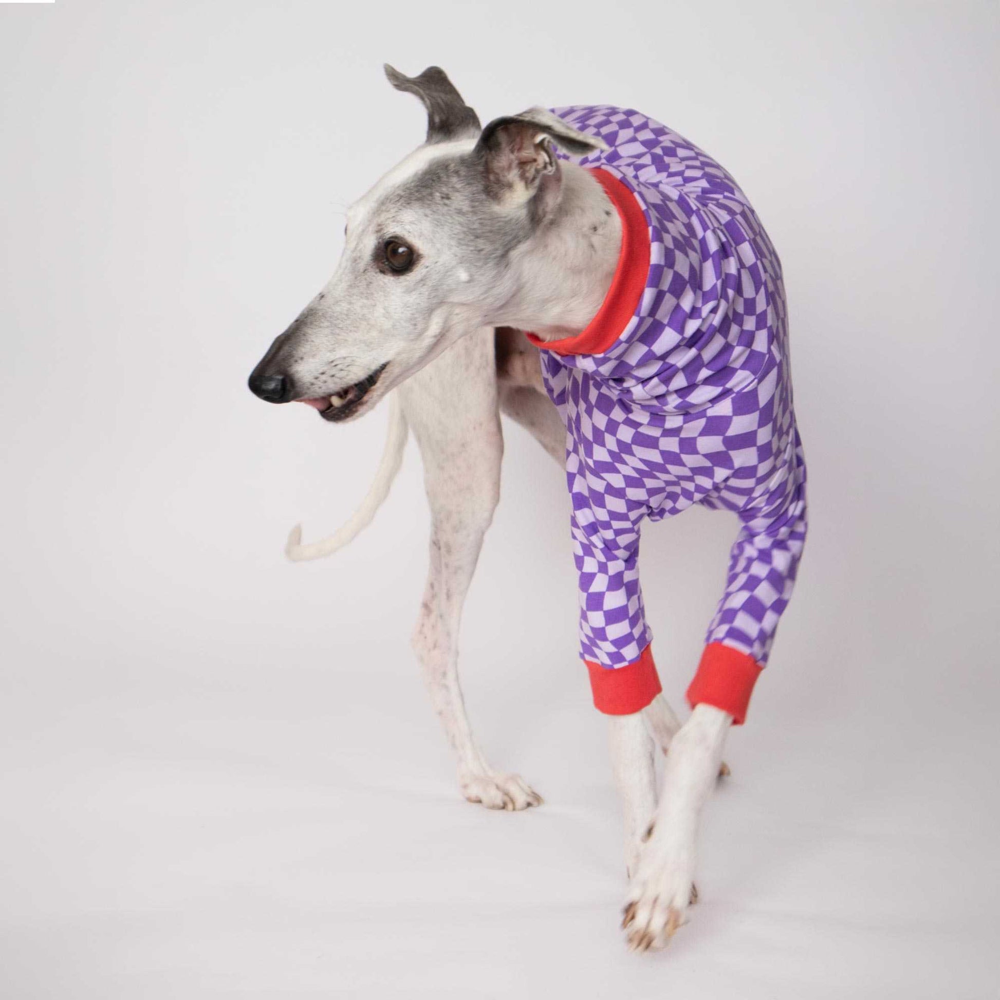 Lilax es una camiseta de manga larga para whippet con un diseño geométrico moderno que aporta estilo sin renunciar a la comodidad. Sus tonos lilas crean un efecto visual dinámico y elegante, ideal para entretiempo o para que tu whippet descanse abrigado con total libertad de movimiento.
